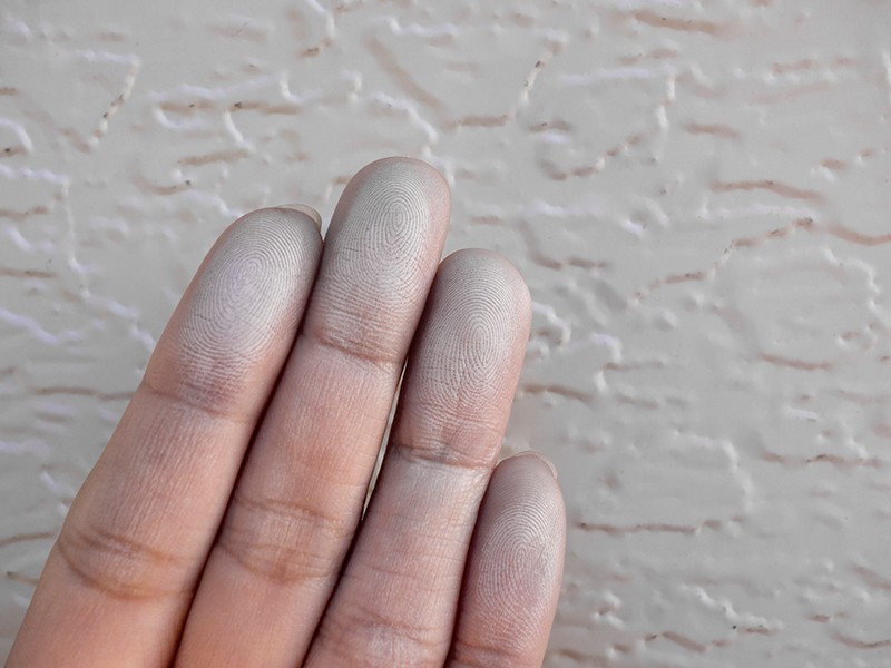 チョーキング現象とは外壁の塗装面に起こる劣化現象の1つで、壁を手で触ると白い粉状が付く現象で白亜化とも言います。うっすらと白くなる程度なら大きな問題ありませんが、真っ白になるような場合は早めの塗装が必要です。外壁に水をかけたときや雨の日に変色する場合も同様ですので、早めのメンテナンスを行いましょう。外壁の種類別に適した洗浄方法、施工で対応します。
