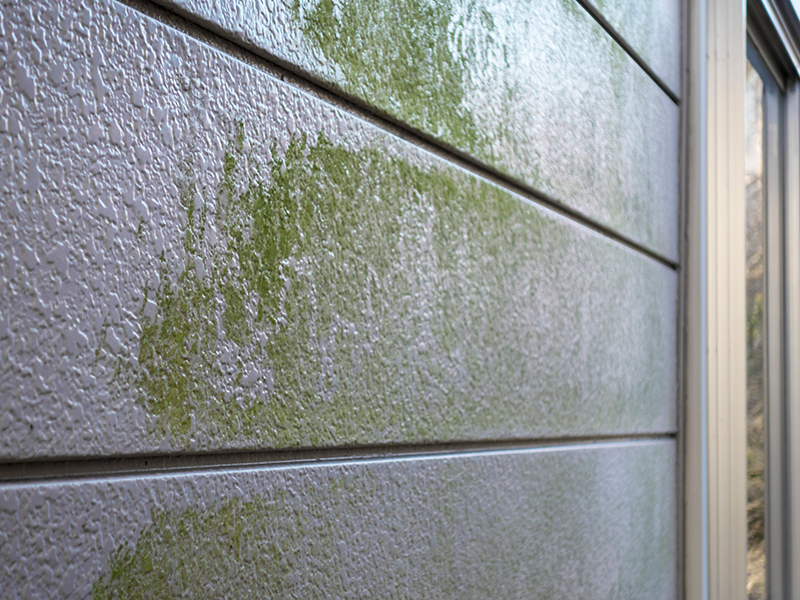水分長時間外壁に残っている場合は、カビ(コケ)などが繁殖しやすい状態です。ですので外壁の状態がコケやカビにとって繁殖しやすい状態になっていれば、たとえ新しい家の外壁でもすぐ繁殖してしまいます。カビやコケを発見した時点で外壁の劣化が進んでいる可能性もあるため、早めに外壁の状態を点検しましょう。